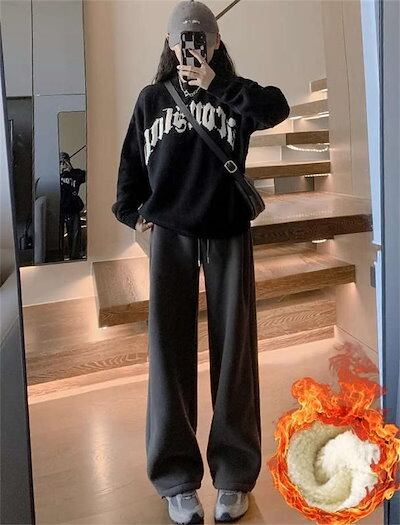 パンツ レディース 秋冬 裏起毛 ゆるい 無地 裏ボア ズボン ウエストゴム 大きいサイズ ぬくぬく ルームウェア 部屋着 極暖 裏起毛パンツ ワイド イージーパンツ ボトムス スウェット ロング 美
