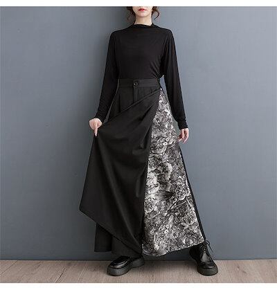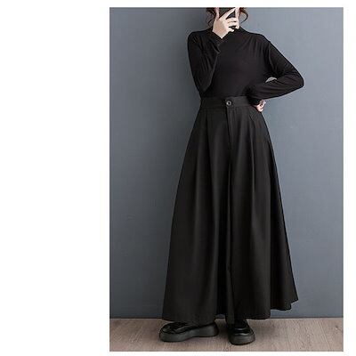 パンツ ワイドパンツ レディース きれいめ 切り替え ロング ガウチョパンツ ボトムス ズボン ワイドガウチョパンツ イージーパンツ 楽ちん フレアパンツ カジュアル 体型カバー 体型隠し ブラック