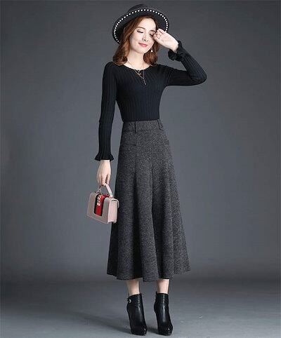 ワイドパンツ レディース フレアパンツ パンツスカート 厚手 ボトムス ガウチョ 春 秋 冬 無地 あったか 防寒 9分丈 ズボン きれいめ カジュアル スカーチョ ハイウエスト ウールタッチ 体型カ
