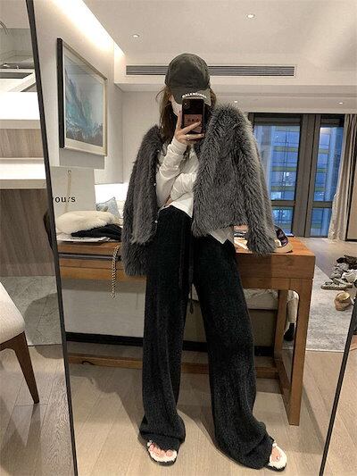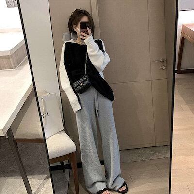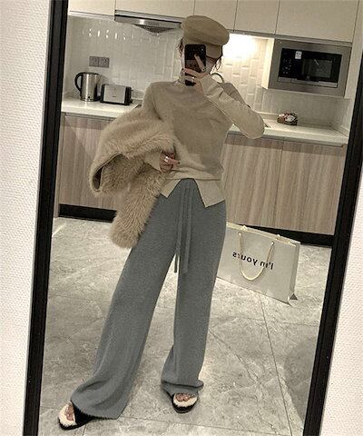 裏起毛 ワイドパンツ シャギーニット ニット パンツ レディース シャギー ストレートパンツ ワイド 裏起毛パンツ 両面起毛 ボトムス ロング 厚手 暖かい 暖か 冷え対策 厚手 もこもこ イージーパ