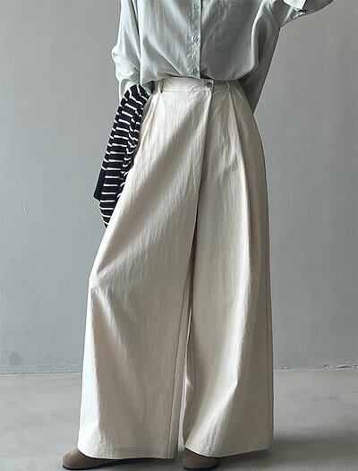 変形タックパンツ ワイドパンツ タックパンツ レディース 変形 ワイド ロング タック パンツ ガウチョパンツ ロングパンツ ワイドタック ラップパンツ オフィス カジュアル 体型カバー 無地 シンプ