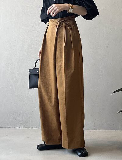 変形タックパンツ ワイドパンツ タックパンツ レディース 変形 ワイド ロング タック パンツ ガウチョパンツ ロングパンツ ワイドタック ラップパンツ ウェストリボン オフィス カジュアル 体型カバ