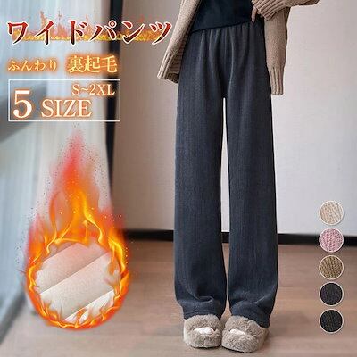 ワイドパンツ レディース 裏起毛 コーデュロイ リブ 起毛 ガウチョパンツ カジュアル ボトムス 肌触りよい ストレートパンツ ふんわり ロングパンツ ウェストゴム ハイウエスト 極暖 着痩せ ゆった