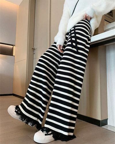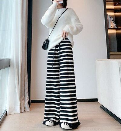 ワイドパンツ ボーダー柄 レディース 春 秋 冬 ボトムス ロング丈 イージーパンツ ストレートパンツ 快適 ゆったり カジュアル パンツ リラックス かわいい 人気 体型カバー おしゃれ ルームウェ