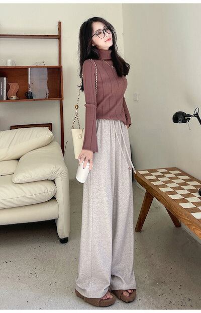 ニットパンツ レディース ワイドパンツ ゆったり 厚手ニット イージーパンツ 秋 冬 ストレートパンツ 体型カバー カジュアルパンツ ニット ロングパンツ ゆったり 長ズボン お洒落 ニットズボン ウ