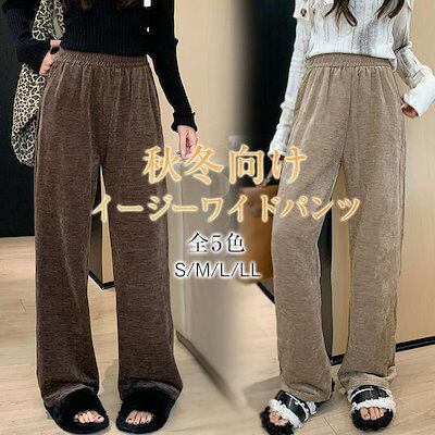 ワイド パンツ ベロア レディース ロングパンツ 光沢 ワイドパンツ ベルベット ガウチョ ズボン ストレートパンツ イージーパンツ ハイウェスト ウエスト総ゴム 部屋着 ジャージパンツ