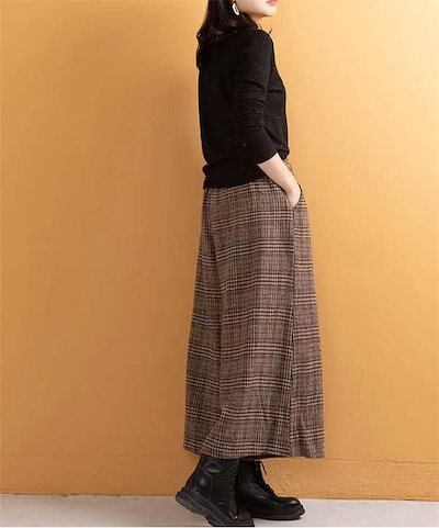 ワイドパンツ レディース 防寒 保温 スカーチョ 九分丈 ワイド 秋 冬 パンツ ガウチョパンツ チェック ボトムス ズボン イージーパンツ 楽ちん 暖パンツ ウエストゴム ポケット ふんわり カジュ