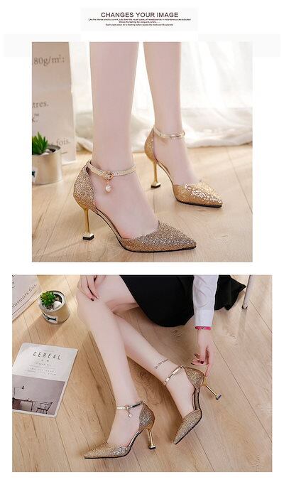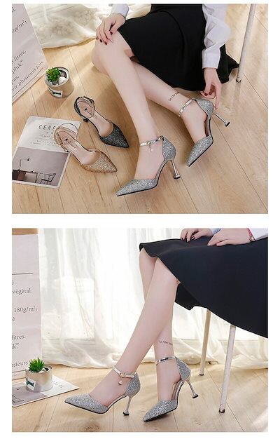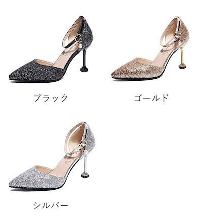 パンプス ストラップ 痛くない 歩きやすい 走れる 楽 9cmヒール キラキラ レディース 入学式 アンクルストラップ ポインテッドトゥ ストラップ ラインストーン ブラック 黒 大きいサイズ 結婚式