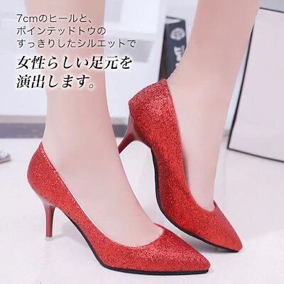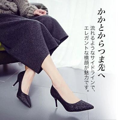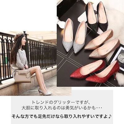 【メガ割 】パンプス 痛くない 7センチ 履きやすい グリッター キラキラ ラメ ポインテッドトゥ