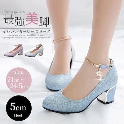 パンプス ハイヒール キラキラ 太いヒール 小さいサイズ ストラップ 女の子 3colors パープル シルバー ブルー 結婚式 ピアノ発表会 可愛い パーティー シューズ 靴 発表会 演奏会 演出今