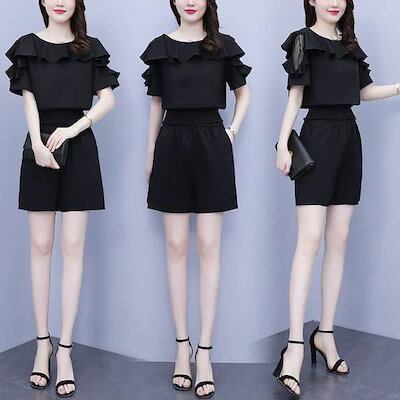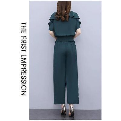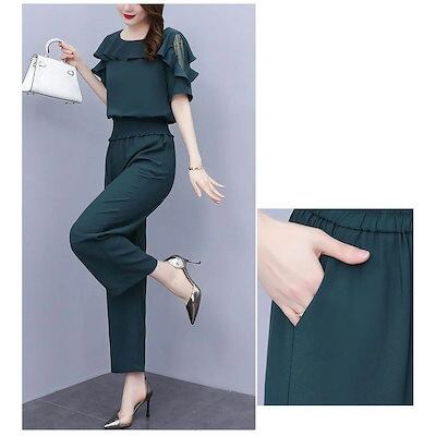 ワイドパンツ 40代 通勤 レディース 半袖 レース セットアップ 大きいサイズ 韓国風 オシャレ カジュアル 着痩せ