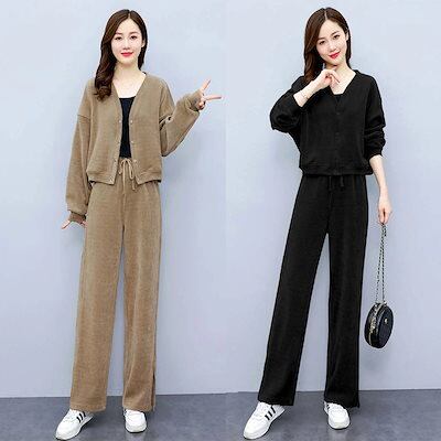 長袖 百掛け 大きいサイズ ジャケット 2oo円OFF!】新作 カジュアル 二点セット 【2枚購入で 通勤 気質 セットアップ ワイドパンツ オシャレ 可愛い レディースファッション おしゃれ