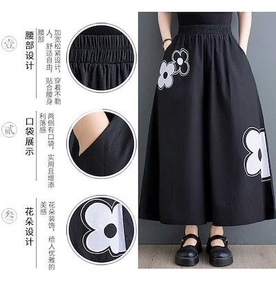 「ファットガール」 キュロットスカート 花柄 九分丈 ワイドパンツ ゴム 体型カバー 大きいサイズ ゆったり レディース