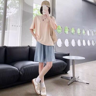脚見せショートパンツハーフパンツレディース夏ハイウエストゆったり着痩せワイドパンツハーフパンツ大きめサイズアイスシルクハーフパンツひんやりボトムス