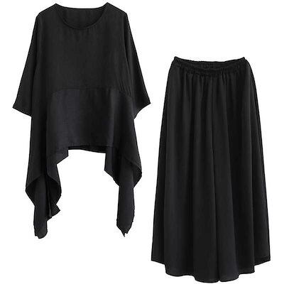 「ファットガール」 2024/夏/大きいサイズ/ワイドパンツ/スリム/レディース/2点セット
