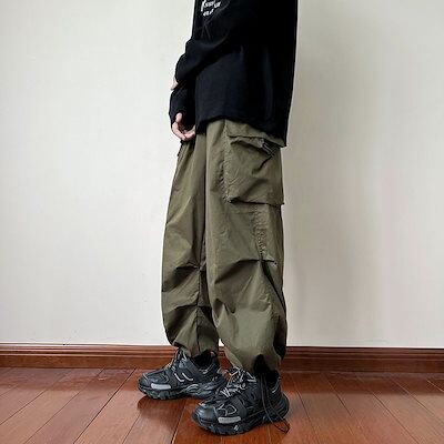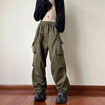 2色 原宿 男女兼用 レディース ミリタリーパンツ ワイドパンツ ハイウエスト ダンス衣装 カーゴパンツ ハイウエスト カジュアルパンツ 着痩せ 大きいサイズ ワイドパンツ