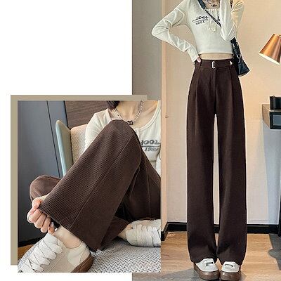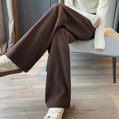 裏起毛 ワイドパンツ レディース コーデュロイ ロングパンツ ポケット付き パンツ ロング ストレート 秋 冬 秋冬 リブ 冬用 きれいめ 暖か 高身長 ワイド 厚手 ゆったり 大きいサイズ 小さいサ