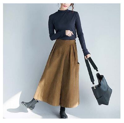 ワイドパンツ レディース コーデュロイ ガウチョパンツ パンツ 体型カバー コーデュロイ パンツ 大きいサイズ ボトムズ 春 秋 着痩せ 美脚 ゆったり 着痩 お洒落 快適 定番 ワイドガウチョ シン