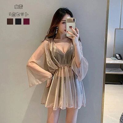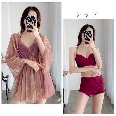 レディース水着3点セット上下セパレート女性水泳パンツブラジャー+水泳パンツ+メッ