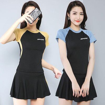 水着レディース体型カバー水着Iワンピース型セパレート水着半袖黒ショットパンツ小胸バンドゥ40オシャレ韓国風スポーツスイムウェアママ水着