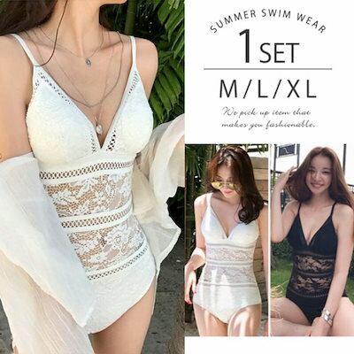 水着 タンキニ レディース 体型カバー ビーチ ワンピース レース 切り替え シースルー オールインワン ノンワイヤー オトナ女子 温泉 白 黒 花柄 セクシー 海水浴 水泳