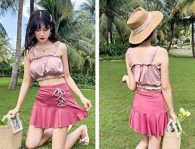 レースアップ タンキニ 水着 レディース 上下セット ビキニ セパレート ビスチェ リボン フレア ハイウエスト 体型カバー 大人 可 愛い きれいめ シンプル カジュアル ナチュラル お洒落 女