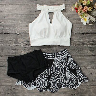 水着 レース 3点セットタンキニ セパレート ビキニ 胸元 谷間 盛れる きれいめ セクシー シンプル 無地 大人 可愛い 体系カバー 20代 30代 レディース 女性 海 リゾート ビーチ プー