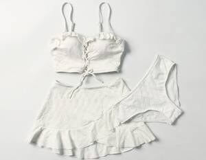 レディース 水着 水泳 人気 通販 トップス レース アップ セパレート 体型 カバー 3点 セット 大胆 イベント リゾート インスタ映え 大人 かわいい きれいめ シンプル セクシー 韓国 フ