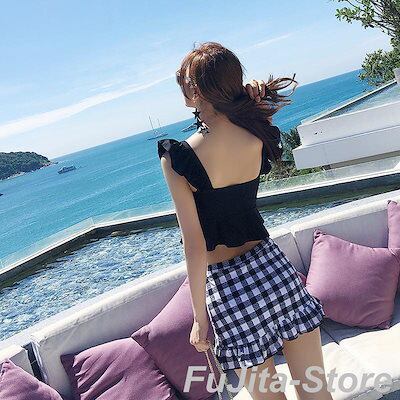 水着 上下セット タンキニ ビキニ セパレート レディース ママ 体型カバー フリル フレア スカート ショーツ ビスチェ パッド付き ワイヤー入り