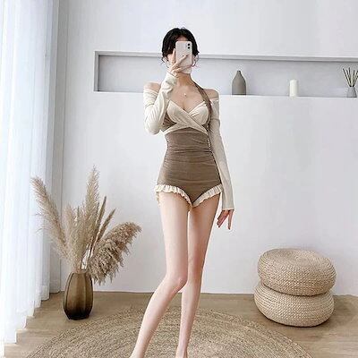 送料無料 水着 ガール 可愛い 痩せ見え リゾート ワンピース水着 クロスデザイン オトナ女子 かわいい おしゃれ ボーイレッグ 長袖 体型カバー レディース 温泉 ビーチ プール 海