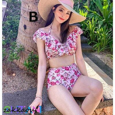 フリア 2色 花柄 2点セット 韓国風 カワイイ レディース タンキニ ハイウエスト ママ 水着 小胸 バックレス 温泉 着痩せ 海水浴 リゾート 20代30代40代