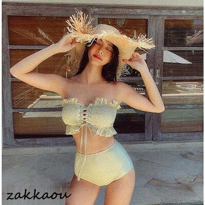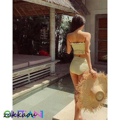 2点セット 韓国風 カワイイ フリア レディース タンキニ ハイウエスト 谷間 ママ 水着 小胸 バックレス 温泉 着痩せ 海水浴 リゾート 20代30代40代