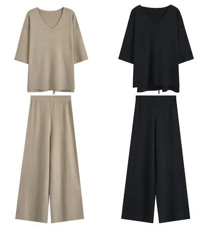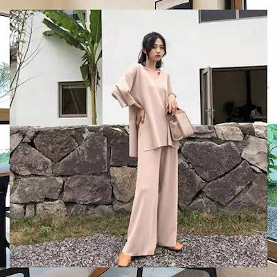 セットアップ 韓国ファッション 2024新作 運動セット涼しく楽ちんセットファッション大きいサイズレディースニット二点セットアップ上下ワイドパンツロング長袖トップス秋服
