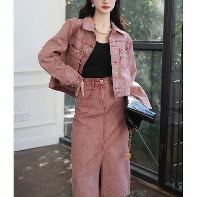 ジャケット デニム セットアップ ピンク デニム オーバーサイズ ワイドパンツ レディース デニムジャケット 上下セット ストレート アウター 羽織り