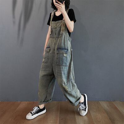 デニムサロペット レディース ワイドパンツ ロング丈 オーバーオール オールインワン 体型カバー 大きいサイズ 春夏