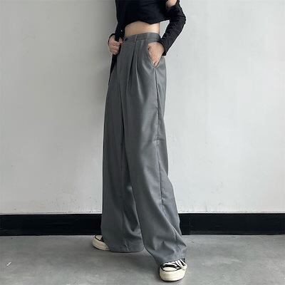 大きいサイズの春の韓国版の新型6色 ロングパンツ 無地 レトロ メンズ レディース 春秋 スラックス カジュアルパンツ ゆったり 黒ストレートワイドパンツドロップ感カジュアルスラックス
