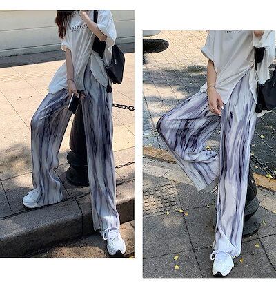 接触冷感ボトムス ズボンワイドパンツ レディース ジョガーパンツ ワイドパンツ レディース ズボン 通気性 ロングパンツ ぼかし染め ファッション スラックスパンツ ズボン 韓国 大きいサイズ
