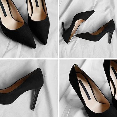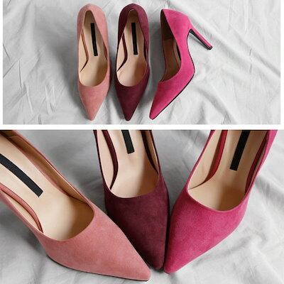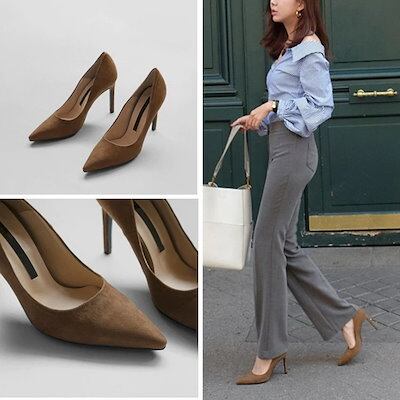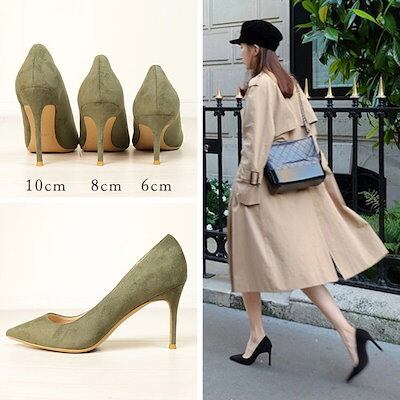 メガ割 パンプス 靴 レディース ポインテッドトゥ 浅め スウェード ハイヒール ピンヒール オフィス 通勤 L 黒 青 グリーン ピンク イエロー 韓国
