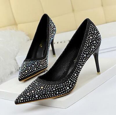 メガ割 ビンヒールキラキラハイヒール 0-250選択可パンプスパーティーシューズ 8cmヒール ポインテ