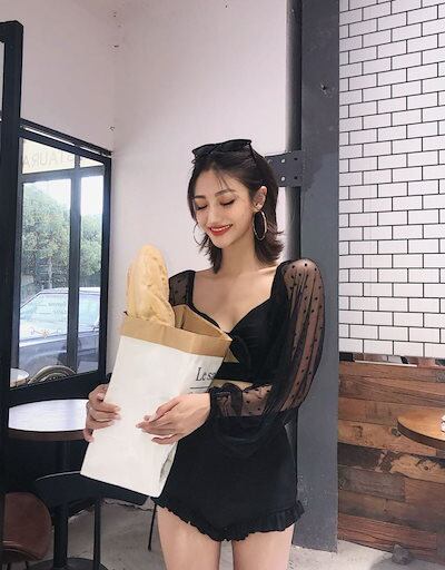 レース袖 フェミニン 水着 ビキニ レディース セパレート リボン レース フリル ハイウエスト セット 上下セット きれいめ シンプル ナチュラル 大人っぽい おしゃれ レトロ クール セクシー