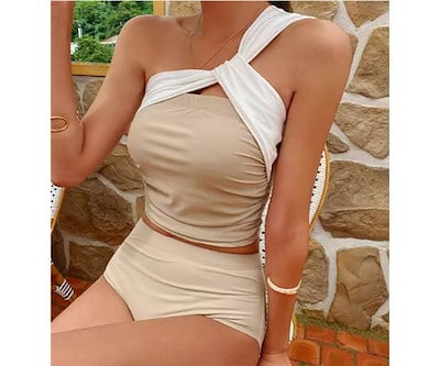 水着 ビキニ レディース タンキニ 体型カバー ビキニ セパレート ワンショル ノンワイヤー パッド付き セット ツーピース 上下セット 大人可愛い シンプル カジュアル 大人っぽい おしゃれ お洒落