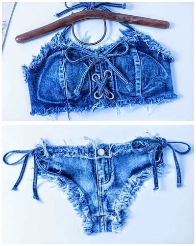 水着 ビキニ レディース セパレート デニム ジーンズ デニムビキニ バンドゥ 紐水着 紐ビキニ ブラジリアン ビキニ 上下 2点セット 大人 夏 海 可愛い 10代 20代 30代 M L XL