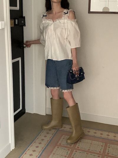 2024 春夏パンツ ハーフパンツ デニム ジーンズ ワイド レース リボン ハイウエスト 美脚効果 脚長効果 細見え 夏 おしゃれ かわいい 韓国ファッション レディース お出かけ