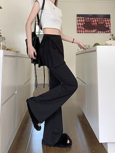2024 春夏パンツ ロング丈 ワイド ハイウエスト 美脚効果 脚長効果 細見え かわいい ゆったり ルーズ カジュアル ファッション系 レディース お出かけ