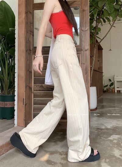 2024春夏パンツ デニム ジーンズ ロング丈 ワイド ストレート ハイウエスト 美脚効果 脚長効果 細見え 夏 白 黒 青 韓国ファッション レディース かわいい おしゃれ カジュアル お出かけ