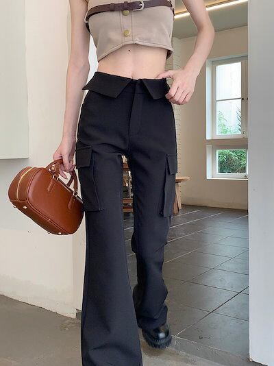 2024春夏パンツ ワイド ストレート ハイウエスト 脚長効果 美脚効果 細見え ポケット 春 黒 カジュアル おしゃれ かわいい 韓国ファッション レディース お出かけ