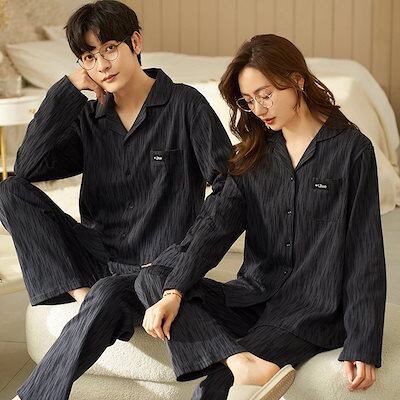 新作登場 パジャマ レディース/メンズ 長袖 綿 おしゃれ カップル ペア ルームウェア 春冬秋 男女 orange