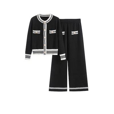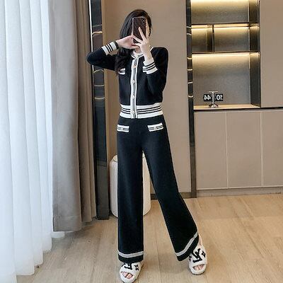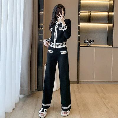 【新作入荷】ブランドニットセットアップニットトップスワイドパンツ ハイウエスト着痩せ効果パンツ韓国ファッションレディース春服上下二点セットアップ orange
