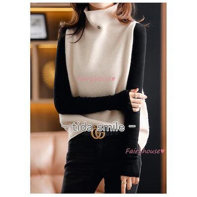 春服 体型カバー 着痩せ 通勤 ゆったり カジュアル韓国風 ニットベスト ハイネック 無地 ノースリープ ベストセーター 春春冬 40代 レディース ニットベスト