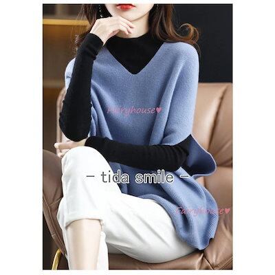 春服 体型カバー 着痩せ 通勤 ゆったり カジュアル韓国風 ニットベスト Vネック 無地 ノースリープ ベストセーター 春春冬 40代 レディース ニットベスト